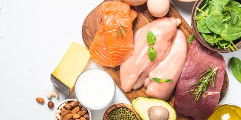 Protein đóng vai trò quan trọng trong việc xây dựng tế bào, mô của thai nhi và cơ thể mẹ. Nguồn protein tốt nhất đến từ thịt nạc (bò, gà, heo), cá, trứng, sữa, đậu và các chế phẩm từ đậu như đậu phụ. Mỗi ngày, mẹ bầu cần khoảng 70-100g protein, tương đương 2-3 phần thịt cá và 1-2 phần đậu/trứng. Protein không chỉ hỗ trợ sự phát triển của thai nhi mà còn giúp mẹ duy trì sức khỏe, chống mệt mỏi và phục hồi nhanh chóng sau sinh.