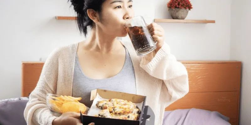 Không chỉ tuổi dậy thì không nên ăn gì? mà chế độ ăn cũng ảnh hưởng đến chất lượng giấc ngủ; ngoài caffeine, việc tiêu thụ nhiều đường và chất béo không lành mạnh có thể làm giấc ngủ bị gián đoạn, ảnh hưởng ngược lại đến tâm trạng, khả năng học tập và lựa chọn thực phẩm vào ngày hôm sau, tạo thành vòng luẩn quẩn khó phá vỡ.